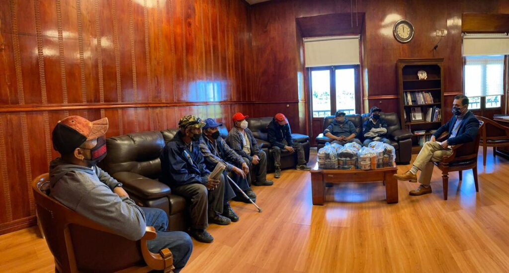 En esta ocasión el Presidente sostuvo una reunión con los boleros que se encuentran ofreciendo su servicio en el jardín principal esto con la finalidad de conocer sus comentarios, necesidades y posible mejoras que se pueden hacer para dignificar su trabajo y lugar donde se encuentran. Además les realizó la entrega de equipamiento como son cepillos, tintas de varios colores y cremas para zapatos.