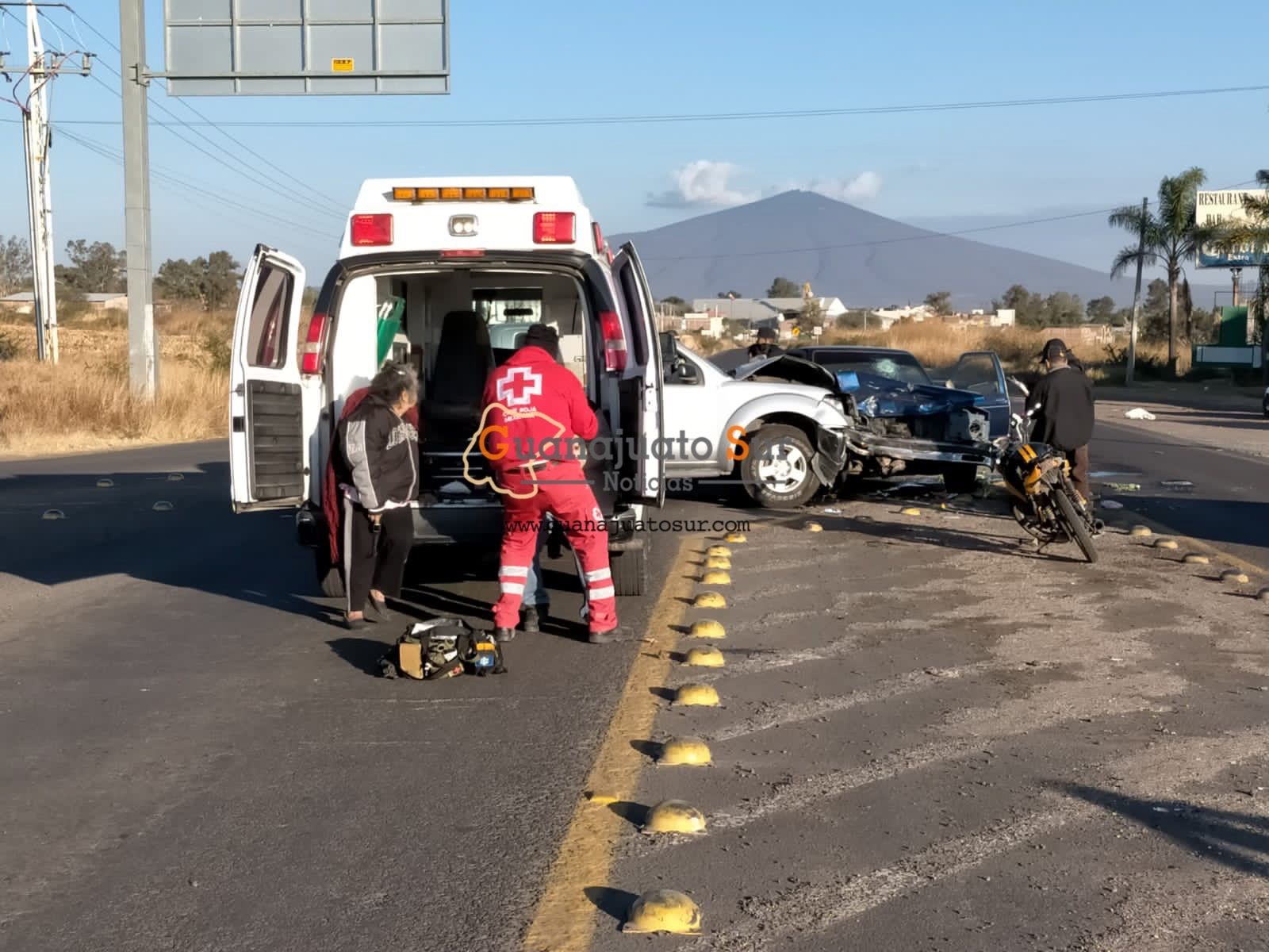 Se registró un fuerte accidente en la carretera Salvatierra Acambaro a la altura del entronque del boulevard Bicentenario que lleva al Hospital General, donde al menos dos personas resultaron lesionadas de consideración.