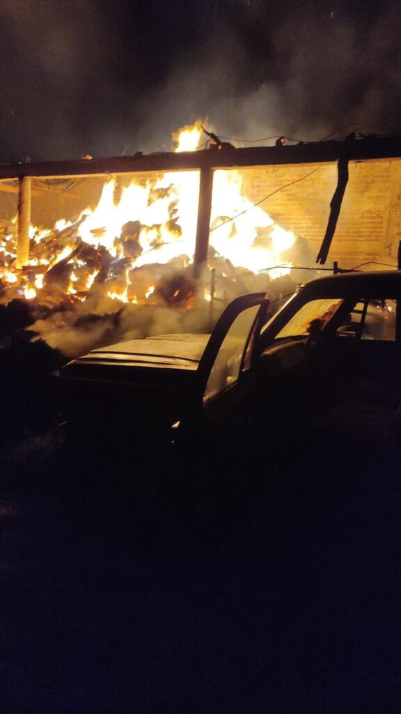 Protección Civil de Tarimoro informo que recibieron un reporte a las 2:30 de la madrugada mediante el Sistema de Emergencias 911 dónde reportaban un incendio de una bodega de pacas el cual se originó a causa de un Fuego Pirotécnico «cuetito» en la comunidad de la Moncada sobre la calle 16 de septiembre.