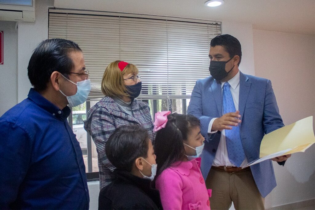 Omar Hernández Álvarez, director de Ecofórum Celaya, entregó el certificado a Gustavo Cabello en compañía de su esposa, Gabriela Barrón Ávila, y sus hijos, Montse y Joshua.