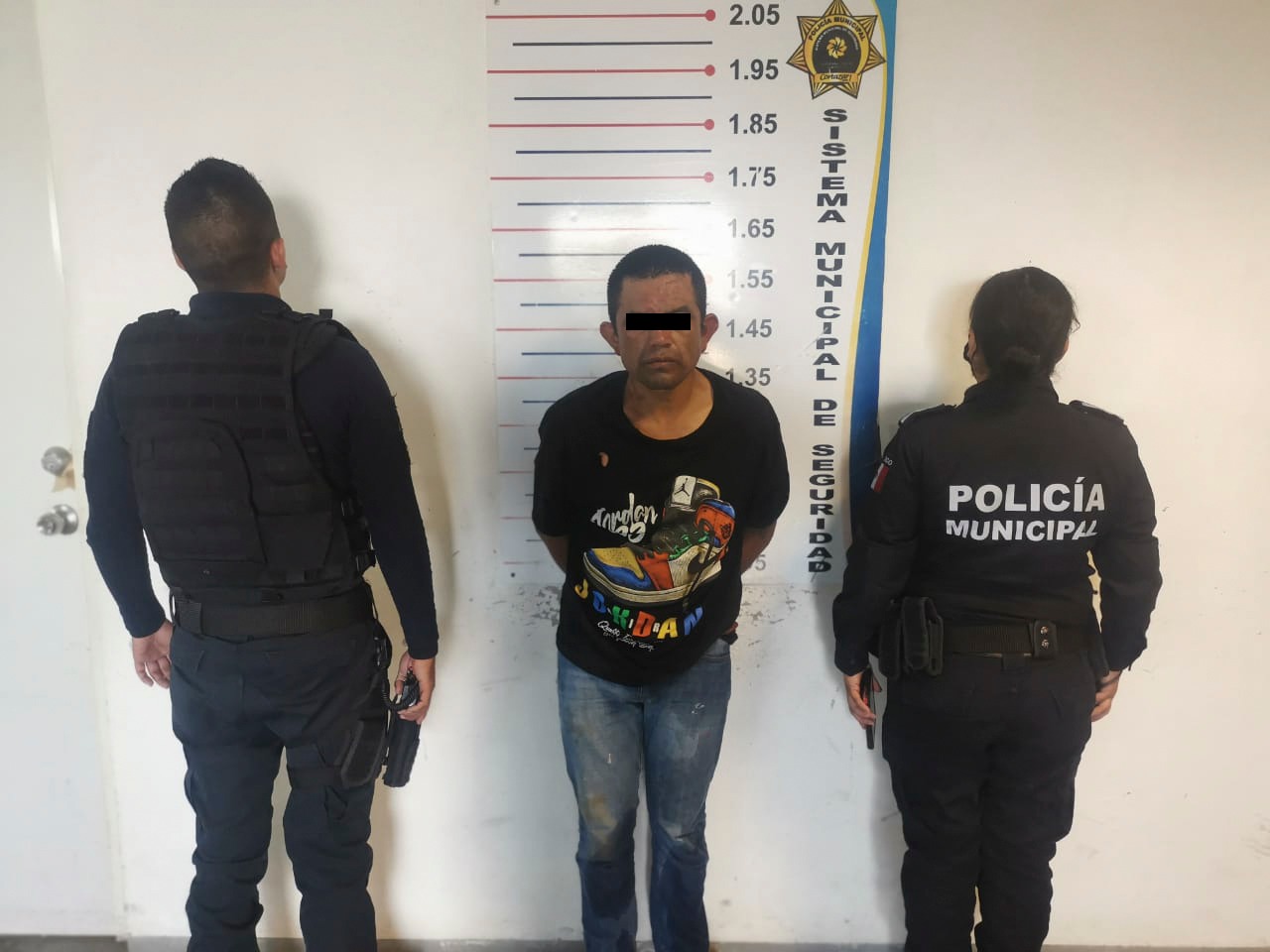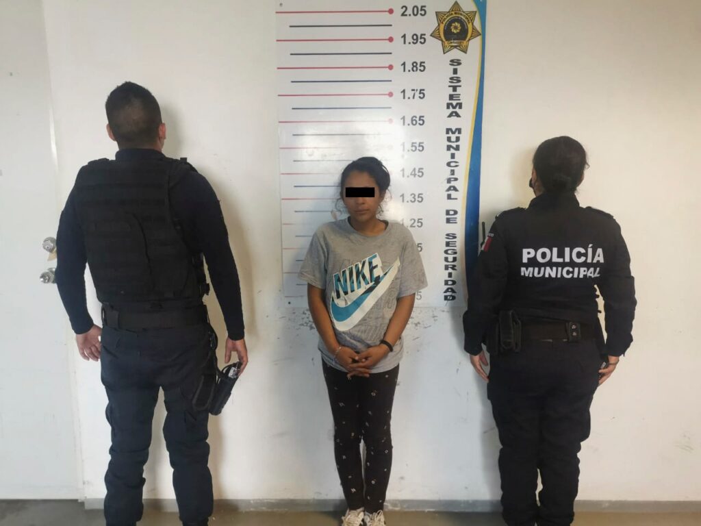 En el lugar se detectó una mujer y un hombre saliendo de la parte trasera de la calle Vicente Suárez de la colonia Arboledas, por lo que se les dio alcance logrando detener a los involucrados en la calle Montevideo en posesión de un objeto de metal color azul, con las características de pertenecer al equipamiento hidráulico.