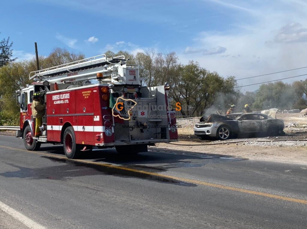 Al arribar se confirmó el reporte encontrando un vehículo tipo Camaro de reciente modelo incendiandose, enseguida elementos del cuerpo de bomberos comenzaron a realizar los trabajos correspondientes para sofocar el fuego.