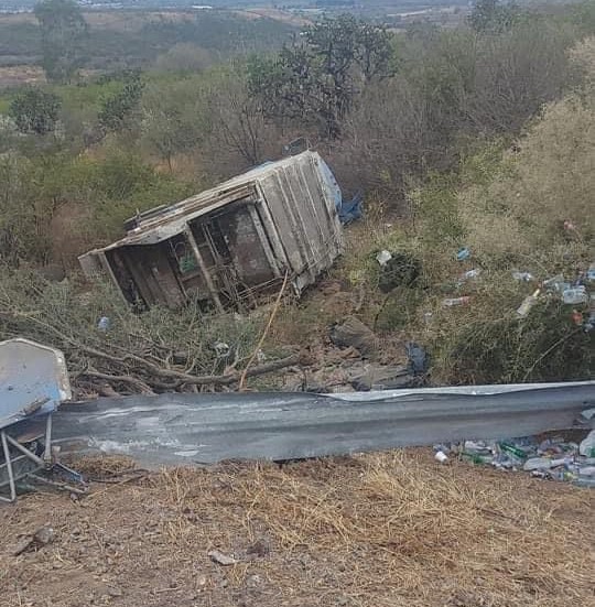 Se recibió un reporte al sistema de emergencias 911 sobre un accidente automovilístico tipo volcadura sobre la Carretera Estatal Tarimoro- Apaseo el Alto a la altura de la cuesta desplazándose al lugar nuestro personal Paramédico y Operativo, confirmando el incidente.