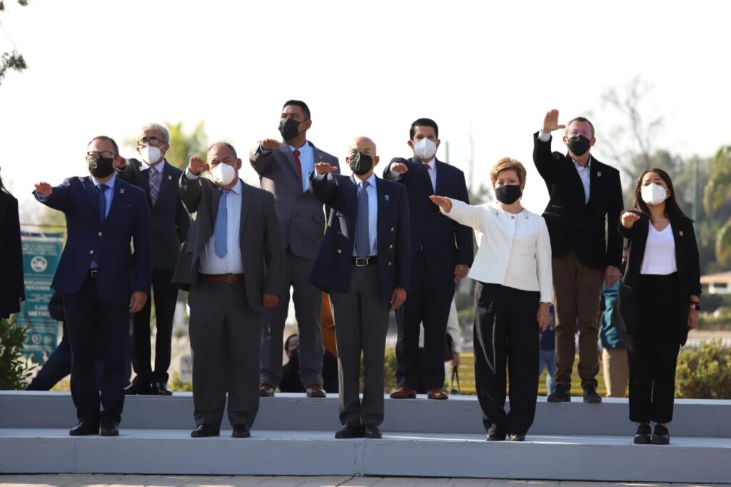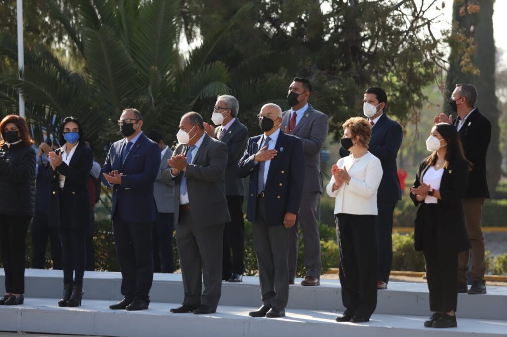 También estuvieron presentes integrantes del Ayuntamiento, directores de las diferentes áreas de la Administración Municipal, alumnos y maestros de la primaria Leyes de Reforma, la banda de guerra del CBTis 198 y contingentes de la Policía Municipal, el Instituto de Formación Policial y de la Policía Turística.