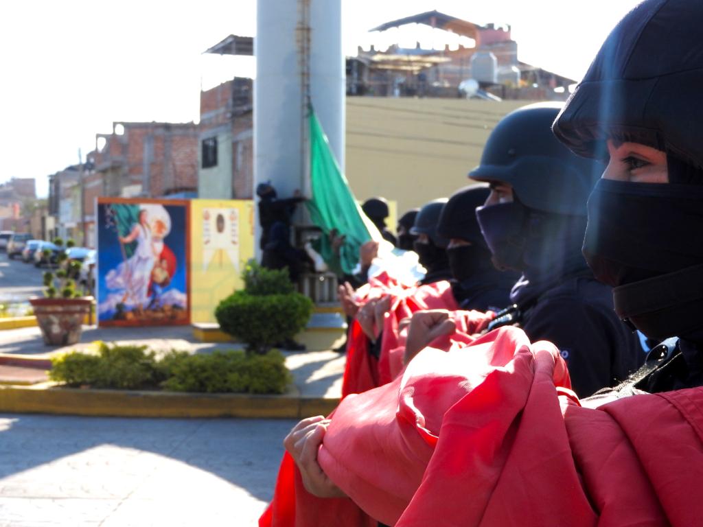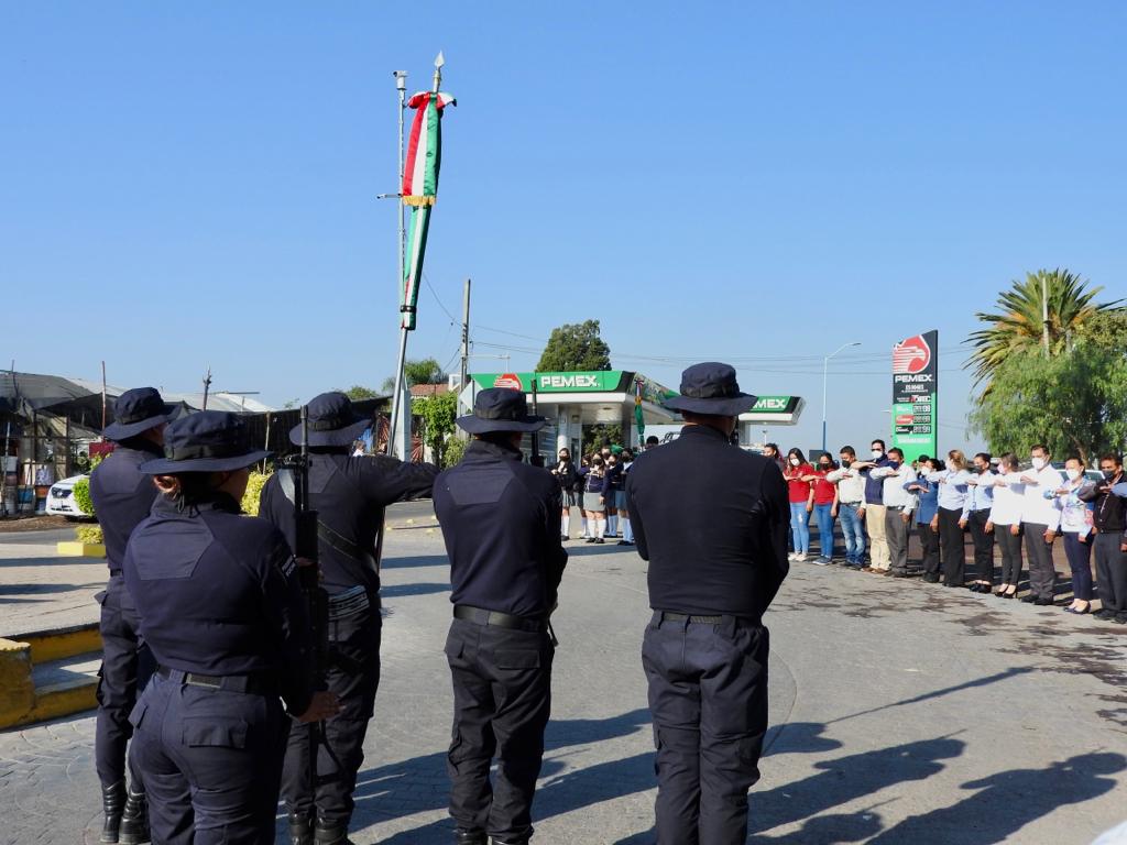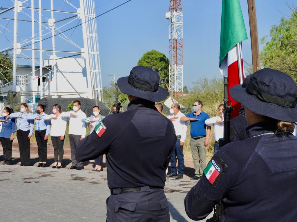 Durante el protocolo, elementos de Seguridad Pública realizaron el izamiento del lábaro patrio acompañados del toque de bandera.