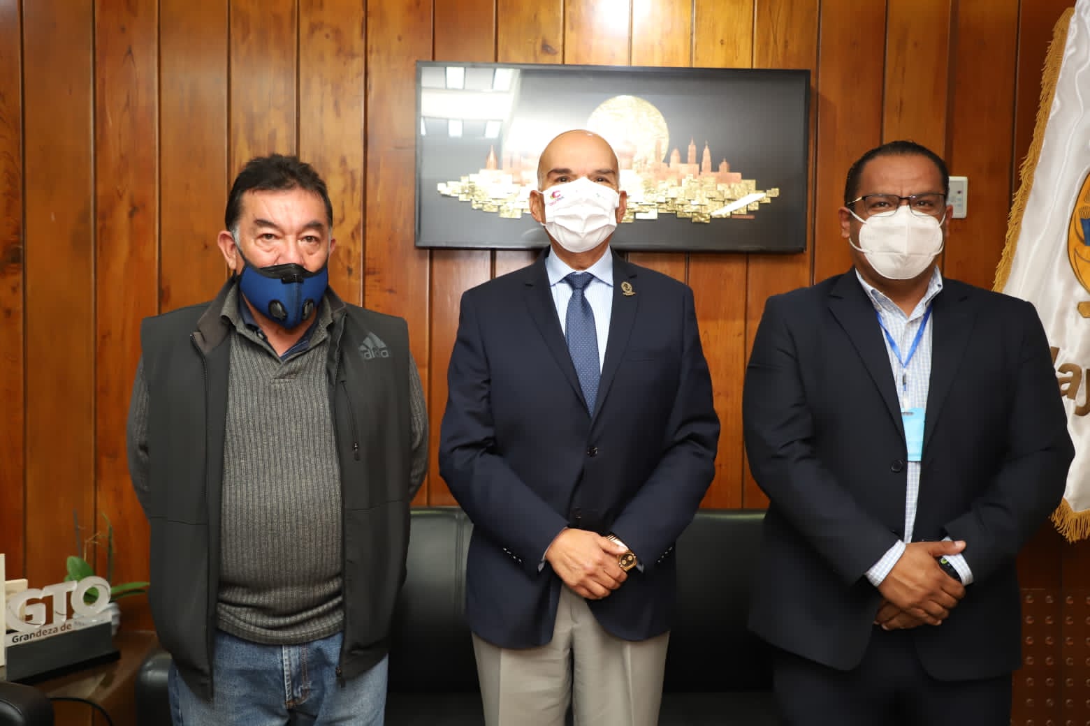 El presidente municipal, Francisco Javier Mendoza Márquez, estuvo durante la entrega-recepción hecha por parte de Jorge Arturo Medina Pérez a Andrés Barrientos González, quien, a partir de este lunes, será el encargado de despacho en el Sistema de Cultura Física y Deporte (SIDEC).