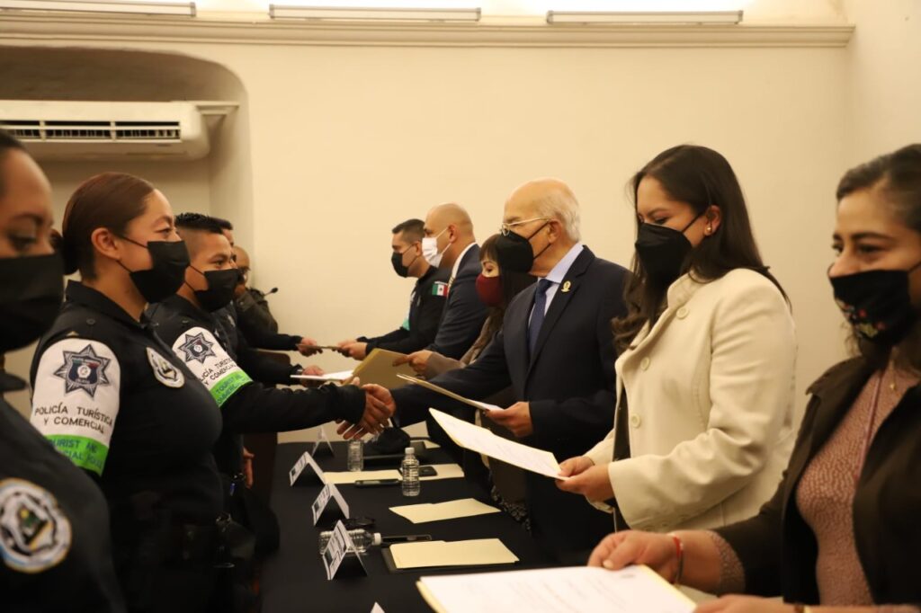 Los 25 elementos que conforman la Policía Turística y Comercial concluyeron su proceso de formación y este jueves recibieron su certificación para iniciar operaciones en el primer cuadro de la ciudad, a partir del próximo lunes 21 de febrero.
