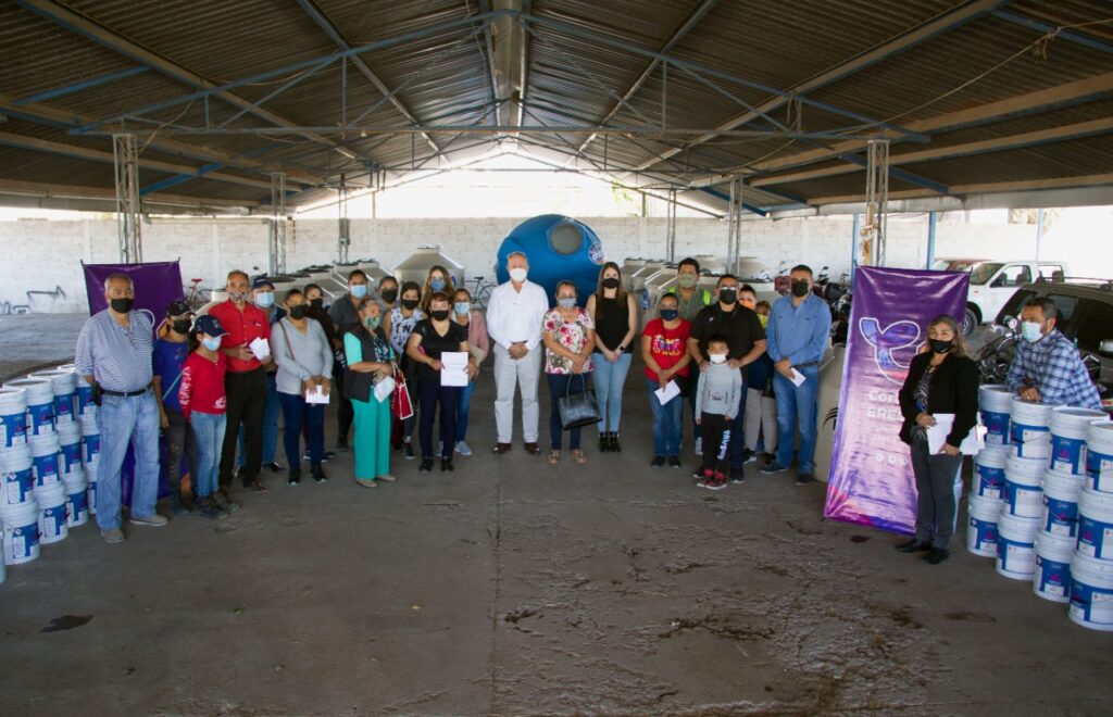 En esta ocasión se entregaron 20 tinacos y 100 cubetas de pintura e impermeabilizante.