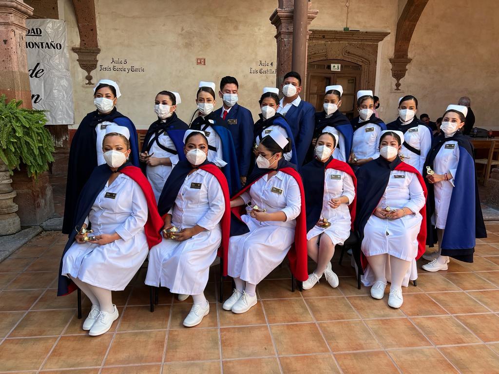 Los egresados acudieron a su ceremonia de graduación con el tradicional uniforme clínico de color blanco llevando consigo una lámpara con la que realizaron el pase de luz en símbolo de lo hecho por la teorista Florence Nightingale.