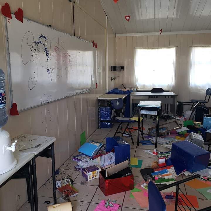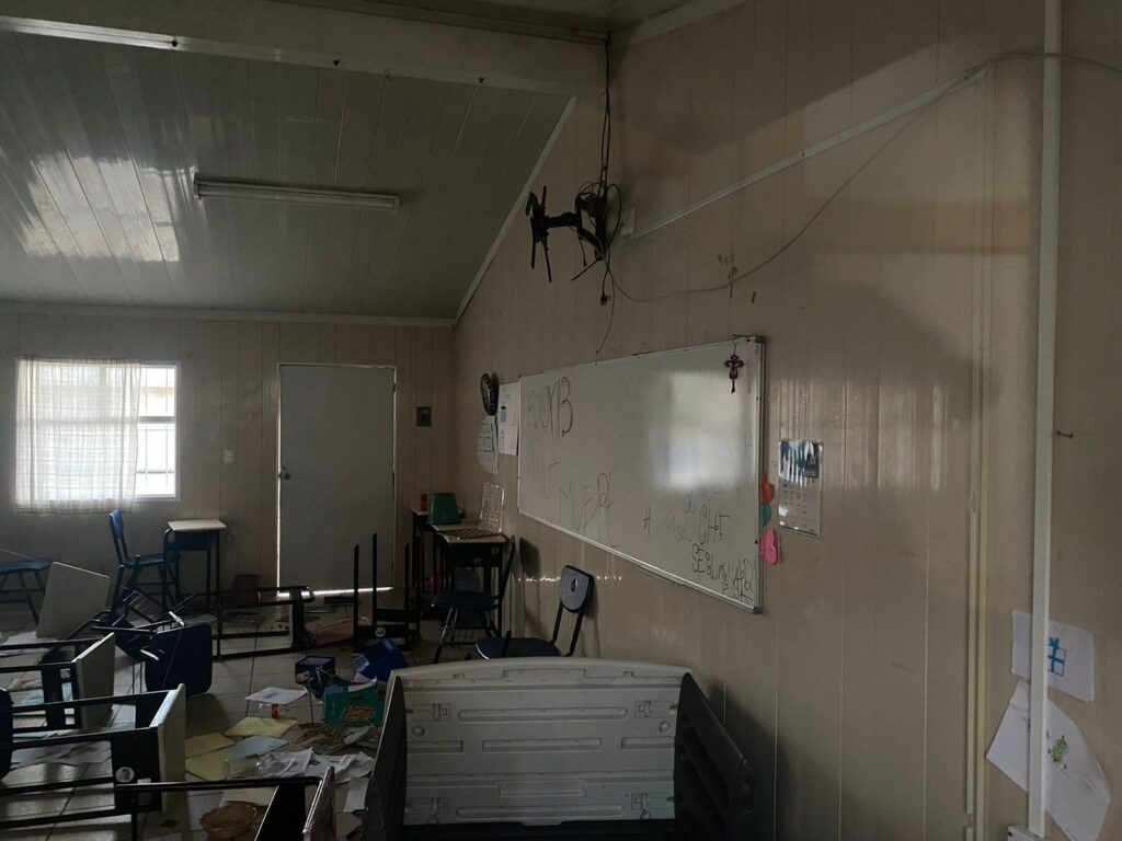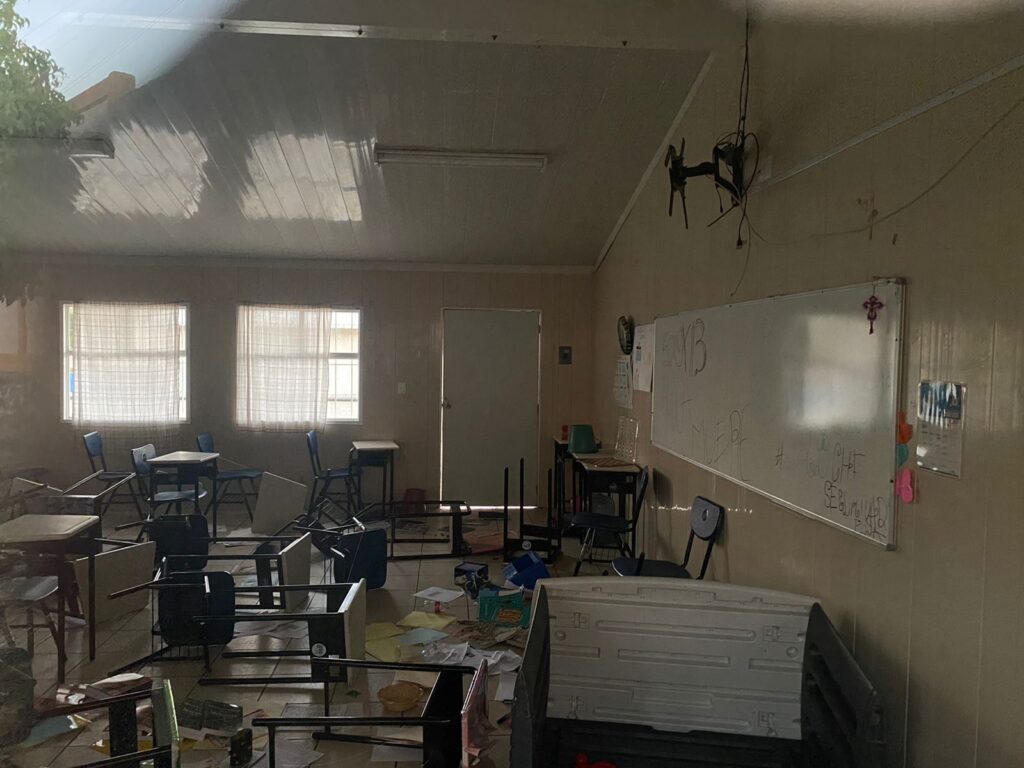 Se dijo que principalmente en esta ocasión fue un acto de vandalismo donde destrozaron material educativo, libros, y papelería. Asimismo “hicieron un desorden y con el uso de pintura mancharon pisos, paredes y los pintarrones.