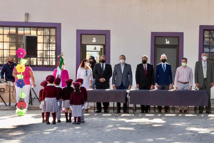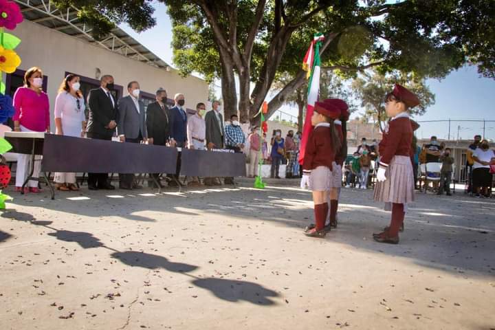 En el acto se rindieron honores al lábaro patrio entonado por la banda de guerra de Bomberos, posteriormente los niños del preescolar entonaron un poema a Benito Juárez que señalan muchos historiadores logró la consolidación de la nación como república, marcando un momento decisivo en la historia nacional.