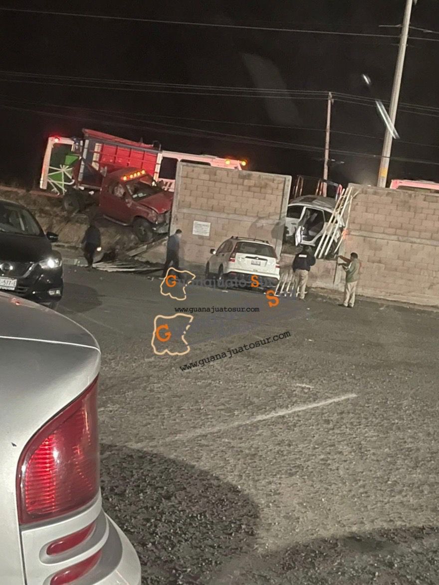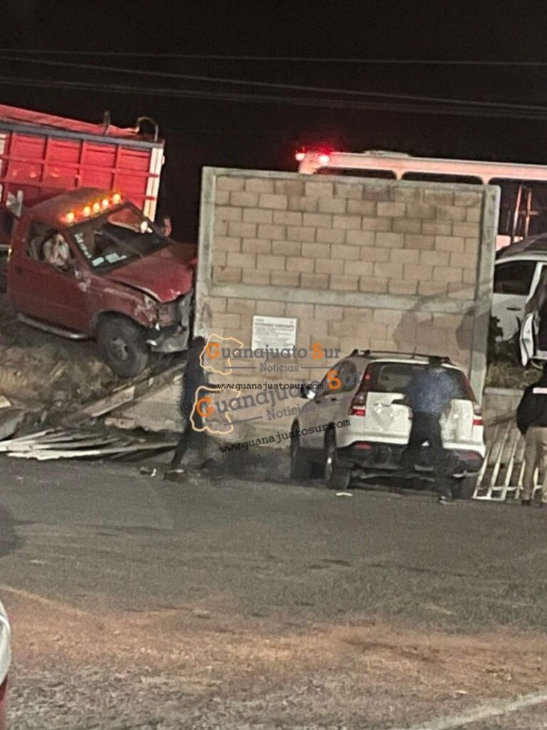 Luego de un intento de asalto se registró un accidente vehicular sobre la carretera Salvatierra-Celaya donde dos vehículos terminaron impactados en una de las bardas frontales de la empresa Mabe.