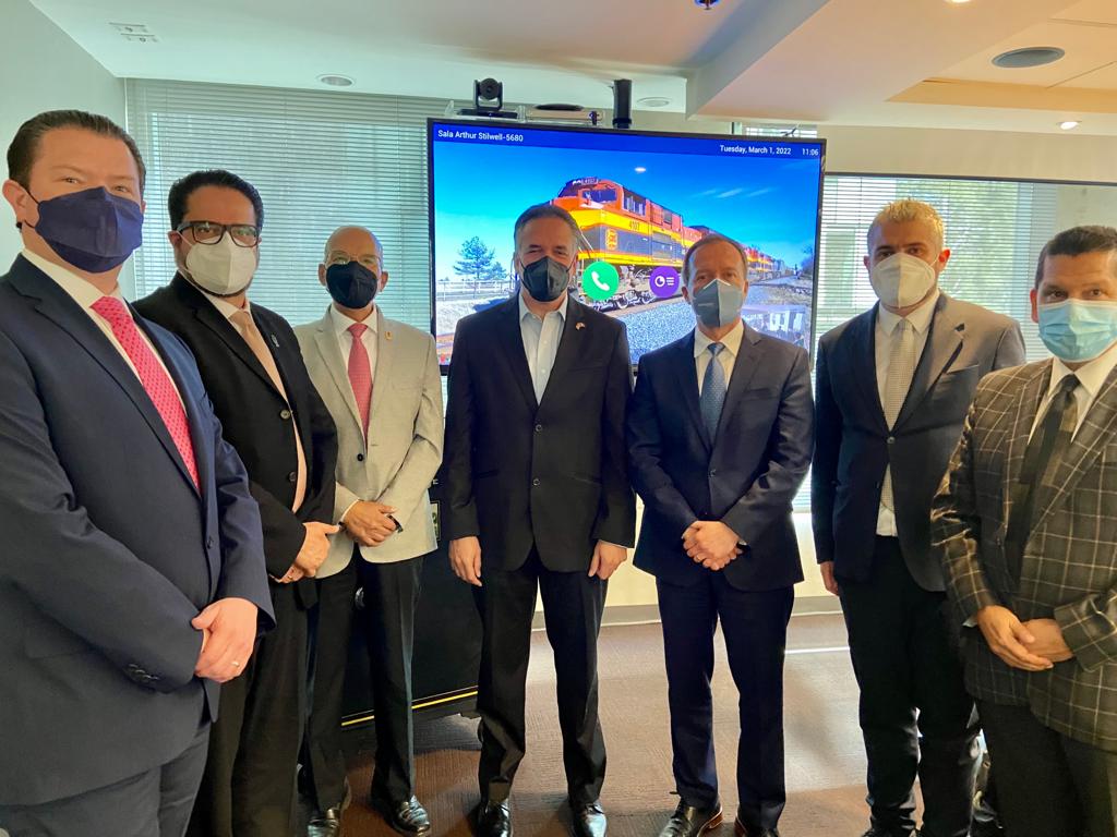 Con la finalidad de dar seguimiento a las gestiones de conclusión del Ferroférico, el Presidente Municipal de Celaya, Javier Mendoza Márquez, y el Secretario de Desarrollo Económico Sustentable, Mauricio Usabiaga, se reunieron con el Presidente de Kansas City Southern México, Óscar del Cueto.