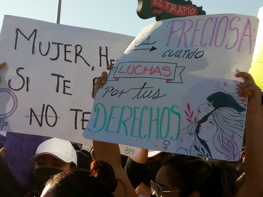 En su recorrido el contingente portada cartulinas con leyendas como: «Hoy luchó por todo lo que tuve que callar y por lo que muchas aún callan», «las mujeres también tenemos el poder», «soy la madre de las niñas que nunca vas a tocar», «soy la niña que subiste por la fuerza» entre otras.