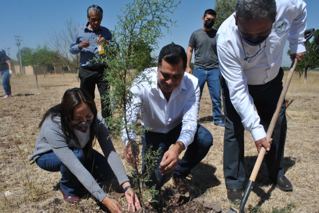 Al finalizar, miembros del Ayuntamiento, autoridades escolares y alumnos del plantel sembraron algunos pinos michoacanos en las instalaciones con la intención de cuidarlos y hacerlos crecer con el paso del tiempo.