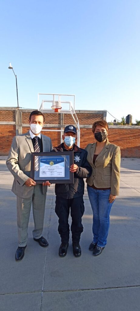 Hoy no fue un día común para Carlos y su familia ya que después del acto cívico llevado a cabo como cada lunes, estuvo presente en su último pase de lista como integrante de la corporación después de 18 años de servicio. Los Regidores Integrantes de la comisión de Seguridad Pública Marisol Alvarado Barrera, José Luis Rodríguez Rodríguez, la Síndico Yatziri Mendoza Jiménez y el Director de Seguridad Pública Daniel Chávez le hicieron la entrega de un reconocimiento por su trayectoria.