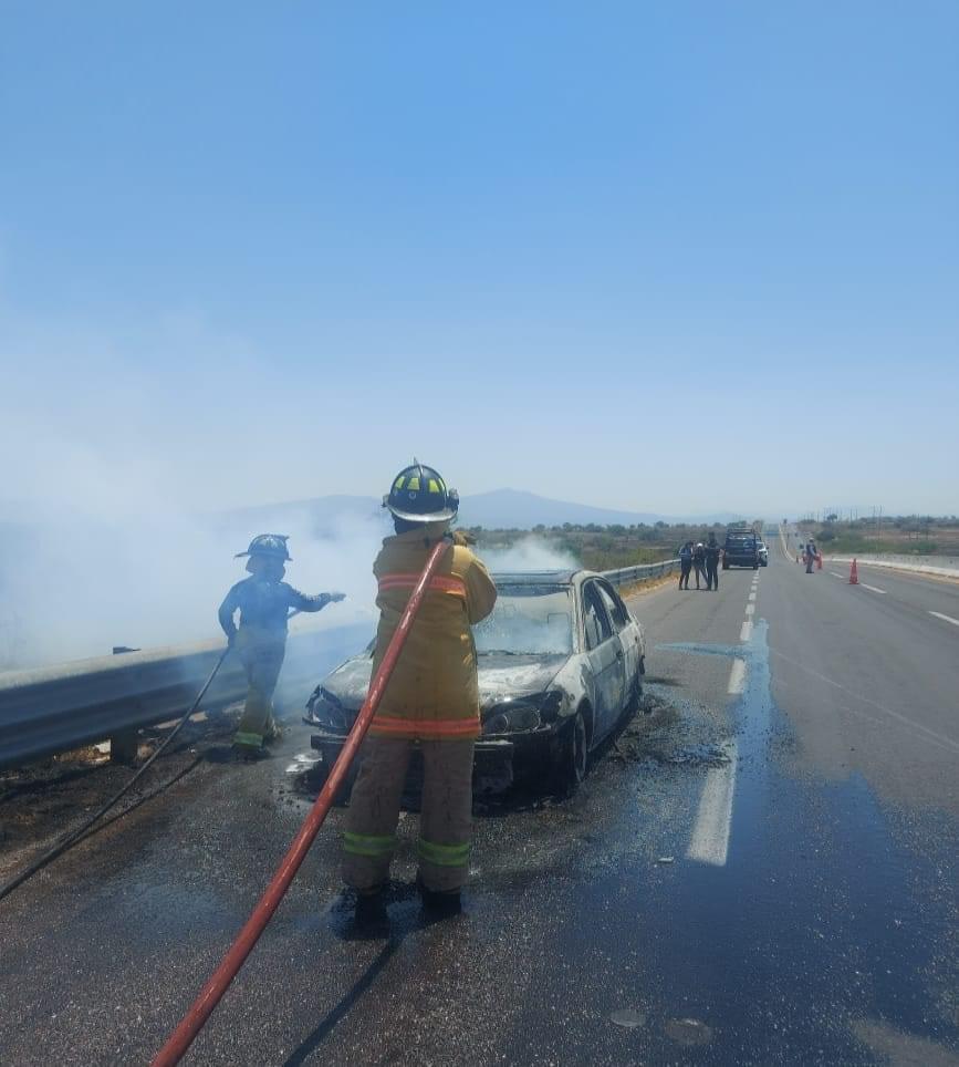 De igual manera elementos de Seguridad Pública y Tránsito Municipal acudieron al lugar del reporte para agilizar el paso vehicular e impedir que otro automóvil tuviera contacto con el vehículo incendiado para evitar mayores percances.