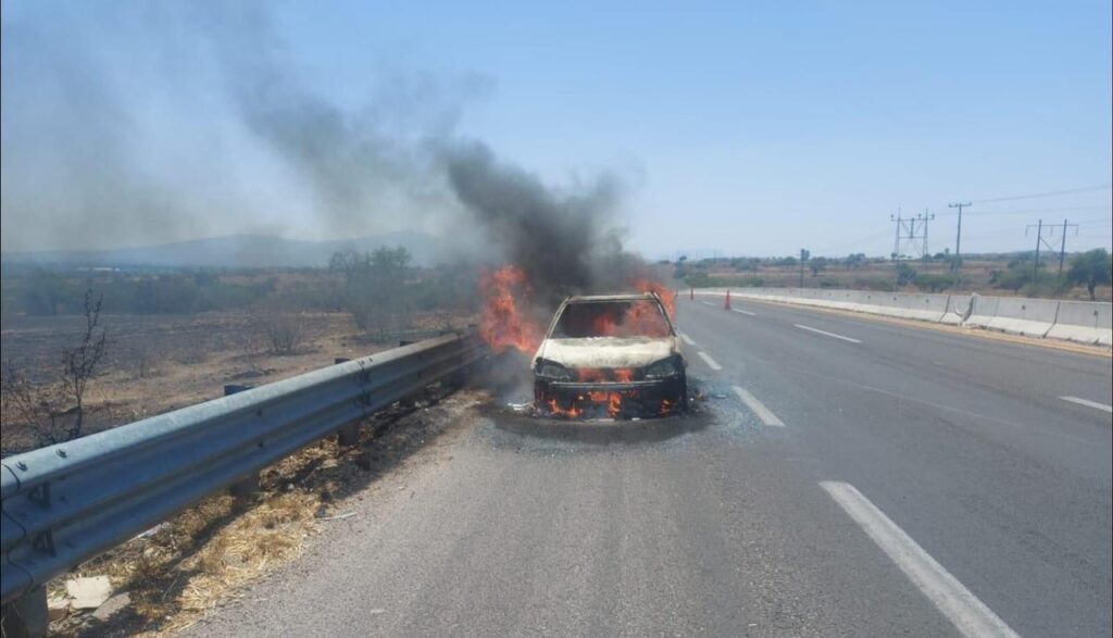 Poco tiempo después nuevamente se reportó a la central de emergencias 911 sobre un vehículo incendiado en la carretera Salvatierra-Celaya, a la altura del puente de la comunidad de la Noria.