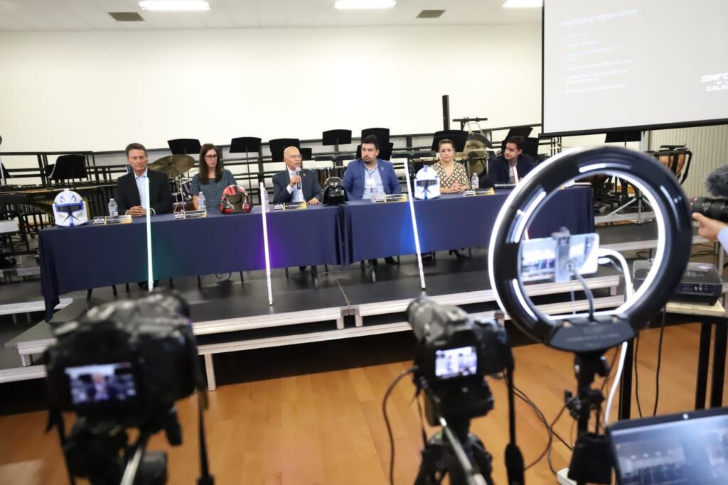 Durante la rueda de prensa estuvieron presentes: Aurora Cárdenas Ávila, directora general del Conservatorio de Música de Celaya; Omar Hernández Álvarez, director de Ecofórum Celaya; Rodolfo Grunberger Reynoso, presidente de la mesa directiva del Conservatorio; Rebeca Reyes Carmona, presidenta del Patronato de la Feria Regional Puerta de Oro del Bajío, y Gabriel Paz, director Nacional Shikai Academy.