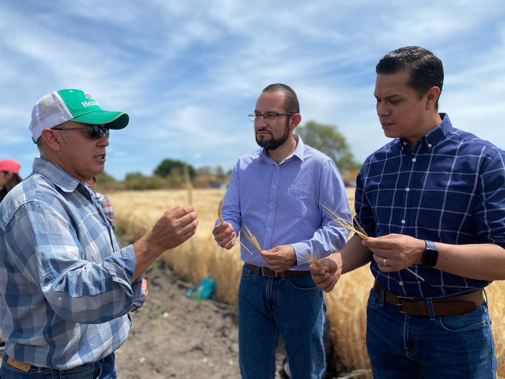 El presidente municipal de Salvatierra, Germán Cervantes Vega, visitó los campos experimentales que están trabajando alumnos del ITESS en conjunto con HEINEKEN para mejorar la producción de cebada.