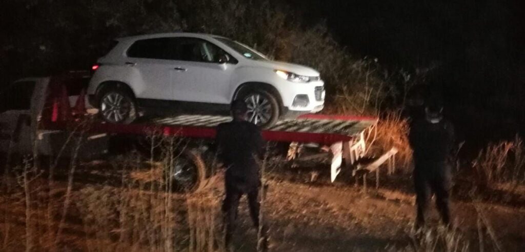 Durante el mismo día 10 de Abril de los corrientes, al realizar labores de patrullajes de seguridad en la carretera estatal Tarimoro – Acambaro a la altura de la comunidad el Fénix, a pie de carretera se aprecia un vehículo tipo SUV con las puertas abiertas, siendo esta una camioneta de la marca Chevrolet, línea Trax, en color blanco, con placas GMC381C, al realizar inspección en el lugar no se aprecian tripulantes o personas cerca de la zona, por lo que al revisar sus números de identificación en los sistemas de información resulta con reporte de robo en fecha 15 de Marzo de 2022.