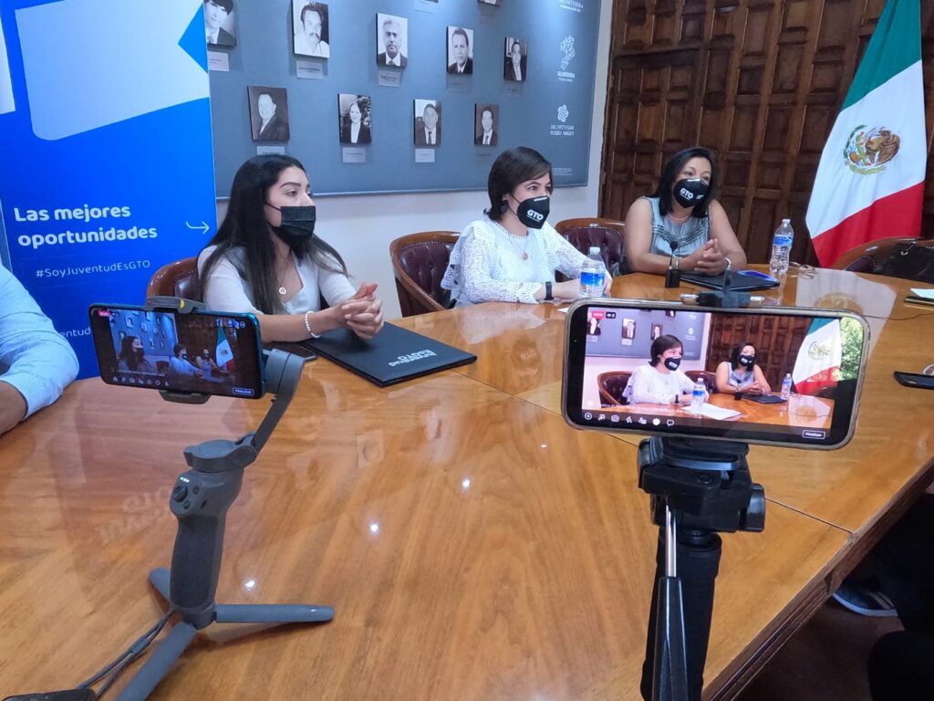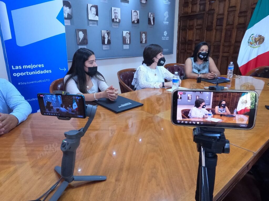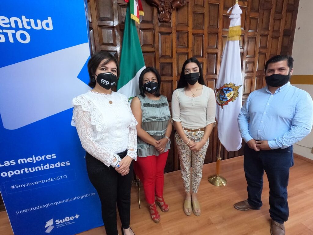 La Coordinadora de Atención a la Juventud Julieta López Ávalos en compañía de Dulce Marián Pérez Ramírez Especialista en Programas Internacionales, Fabiola Bautista Salinas Coordinadora de Vinculación Nacional y Jorge Adalberto Cervantes Salazar especialista en Relaciones Intermunicipales quienes son representantes del Instituto para el Desarrollo y Atención a las Juventudes del Estado de Guanajuato dieron a conocer detalles de dicho programa.