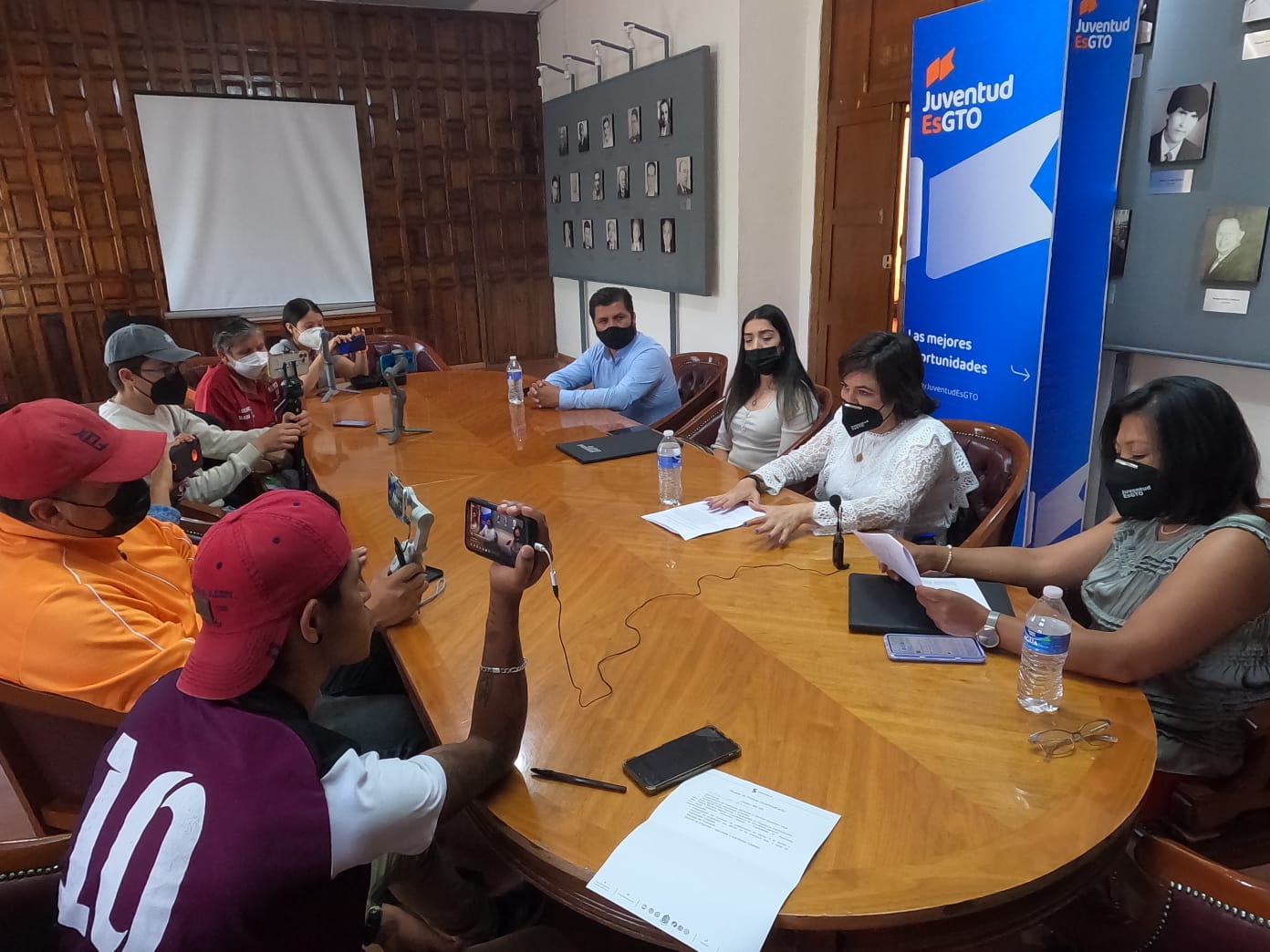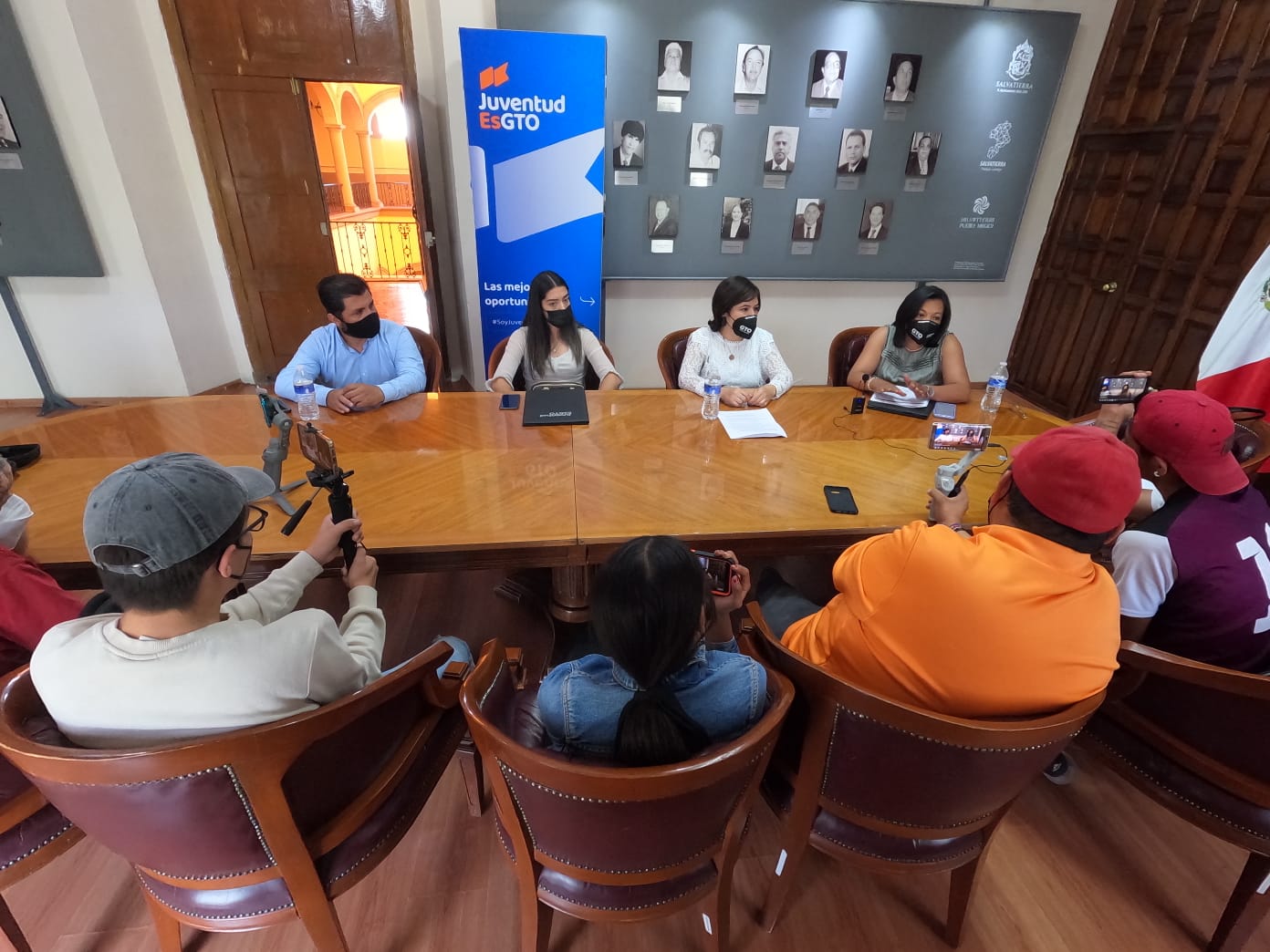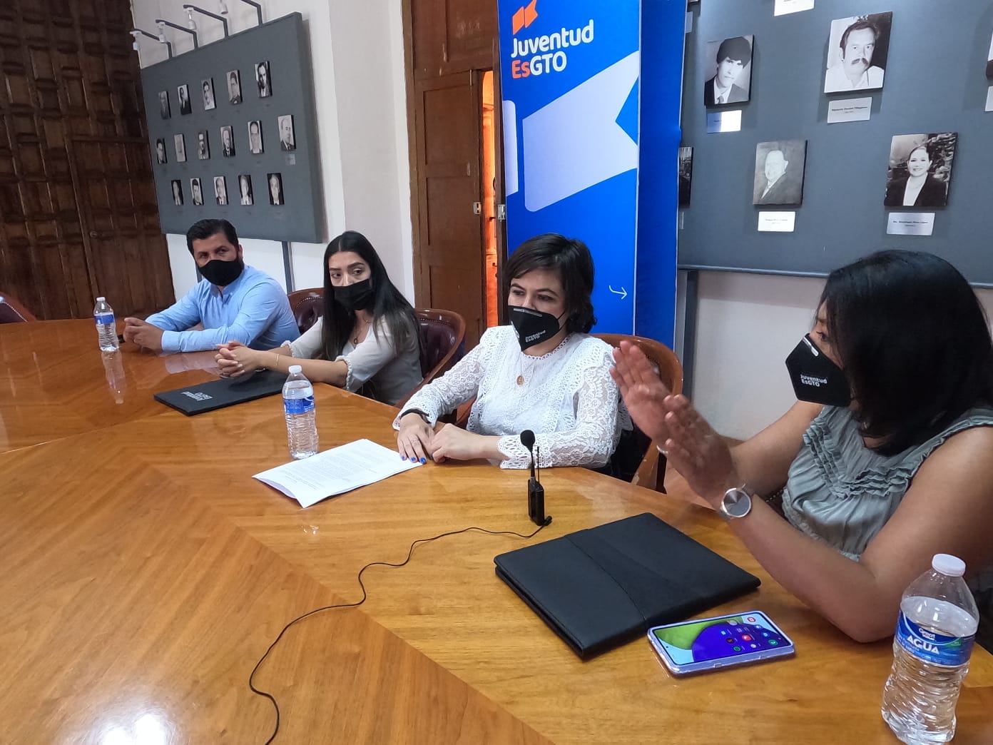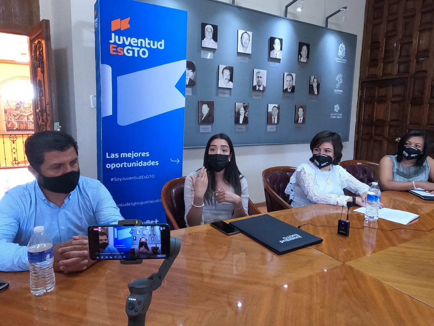 La Coordinadora de Atención a la Juventud Julieta López Ávalos en compañía de Dulce Marián Pérez Ramírez Especialista en Programas Internacionales, Fabiola Bautista Salinas Coordinadora de Vinculación Nacional y Jorge Adalberto Cervantes Salazar especialista en Relaciones Intermunicipales quienes son representantes del Instituto para el Desarrollo y Atención a las Juventudes del Estado de Guanajuato dieron a conocer detalles de dicho programa.