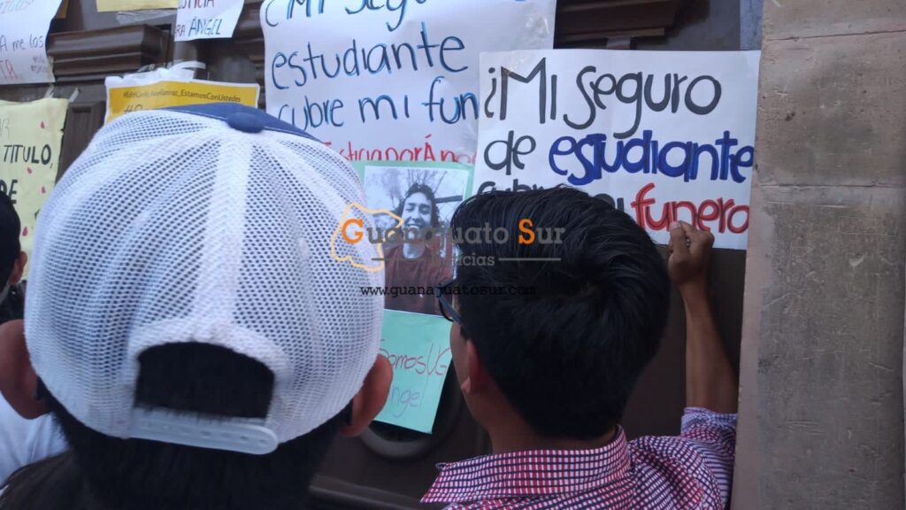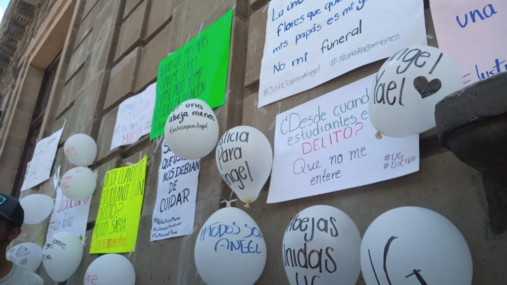 Decenas de estudiantes de la Universidad de Guanajuato así como padres y docentes se manifestaron de manera pacífica pidiendo justicia por el homicidio de Ángel.