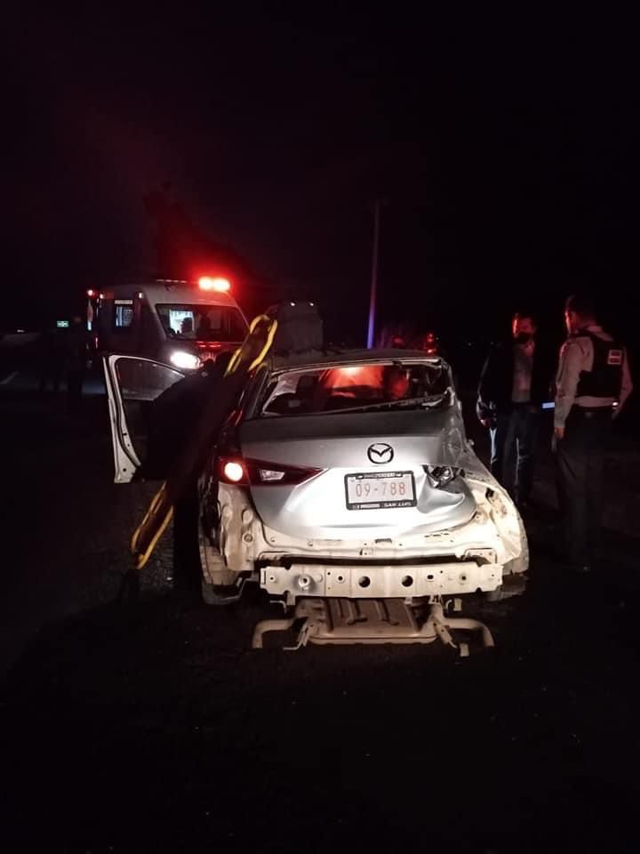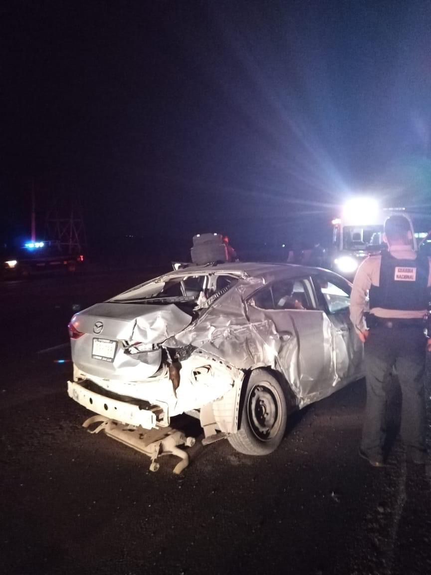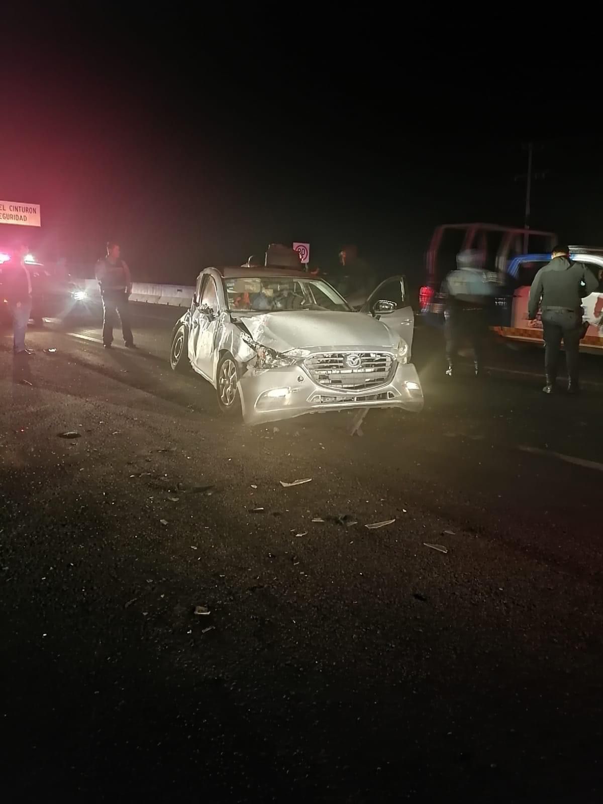 Como primeros respondientes se desplazaron al lugar elementos de Seguridad Pública y Tránsito Municipal localizando que un automóvil de color gris de la marca Mazda había sufrido severos daños materiales, mientras que en el interior viajaban dos tripulantes siendo un hombre y una mujer.