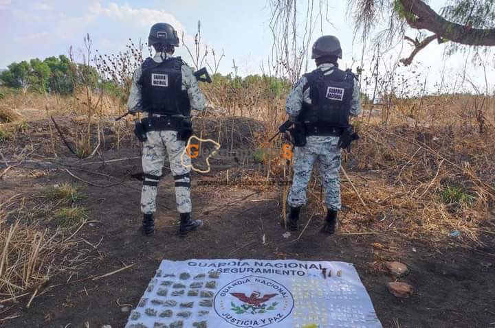 Tras recorrido de seguridad en las calles de la comunidad 1ra Fracción de Crespo, elementos de Guardia Nacional aseguraron 160 estupefacientes.
