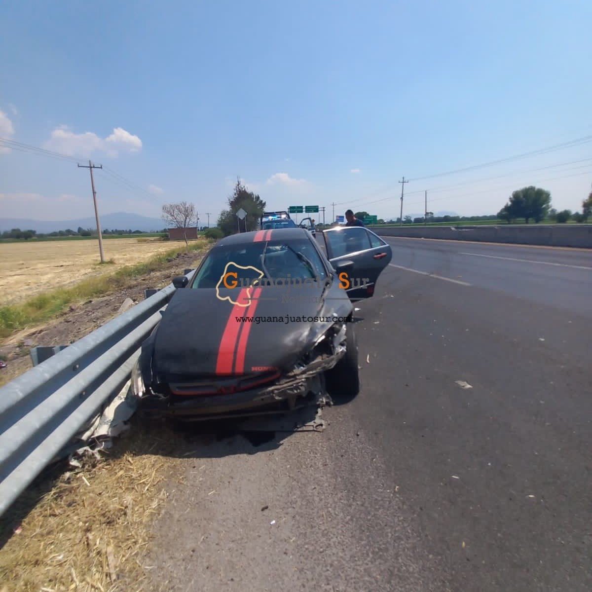 Solo daños materiales se registraron en un accidente automovilístico registrado sobre la carretera Salvatierra-Celaya cuando el conductor de un automóvil se impactó contra la barrera de seguridad.