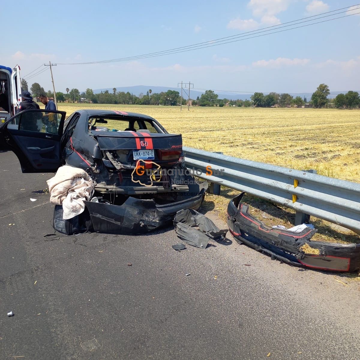 Solo daños materiales se registraron en un accidente automovilístico registrado sobre la carretera Salvatierra-Celaya cuando el conductor de un automóvil se impactó contra la barrera de seguridad.