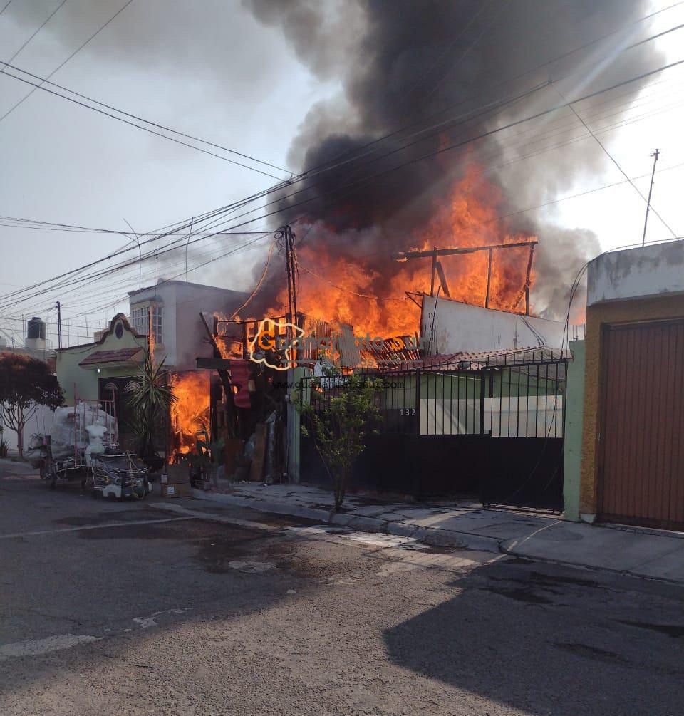 Un inmueble ubicado en la colonia Valle del Real utilizado como recicladora fue pérdida total tras registrarse un incendio.