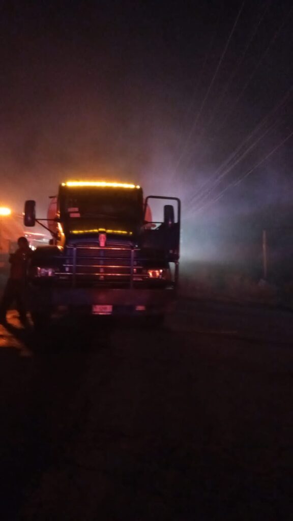 Rápidamente cuerpos de Bomberos de Apaseo el Grande y Celaya llegaron al sitio evitando que ocurrirá una tragedia debido a que las llamas se acercaron a la empresa Montacargas y Racks.