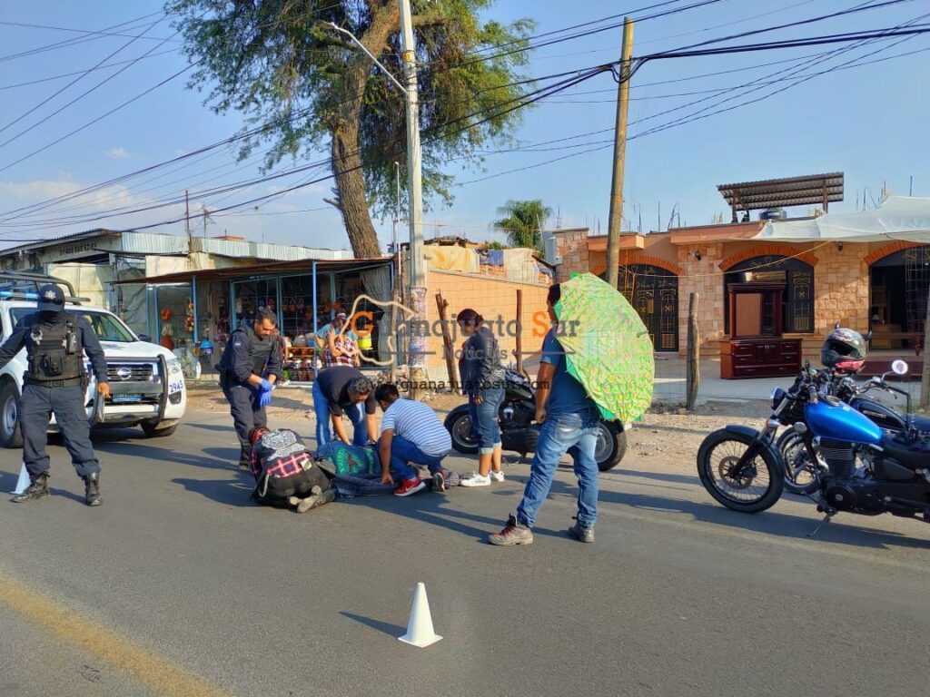 El conductor de una motocicleta resultó con lesiones luego de impactarse contra un tráiler estacionado sobre la carretera, en la comunidad de San Pedro de los Naranjos, mismo que pertenece a un motoclub Biker llamado»Vagos».