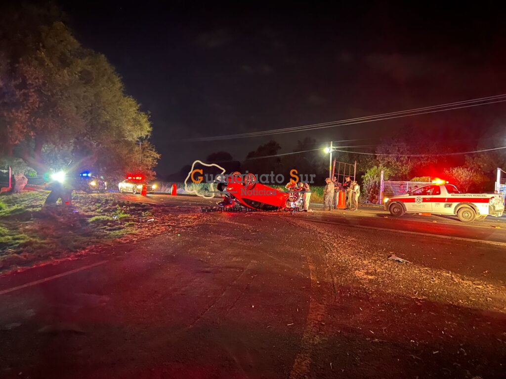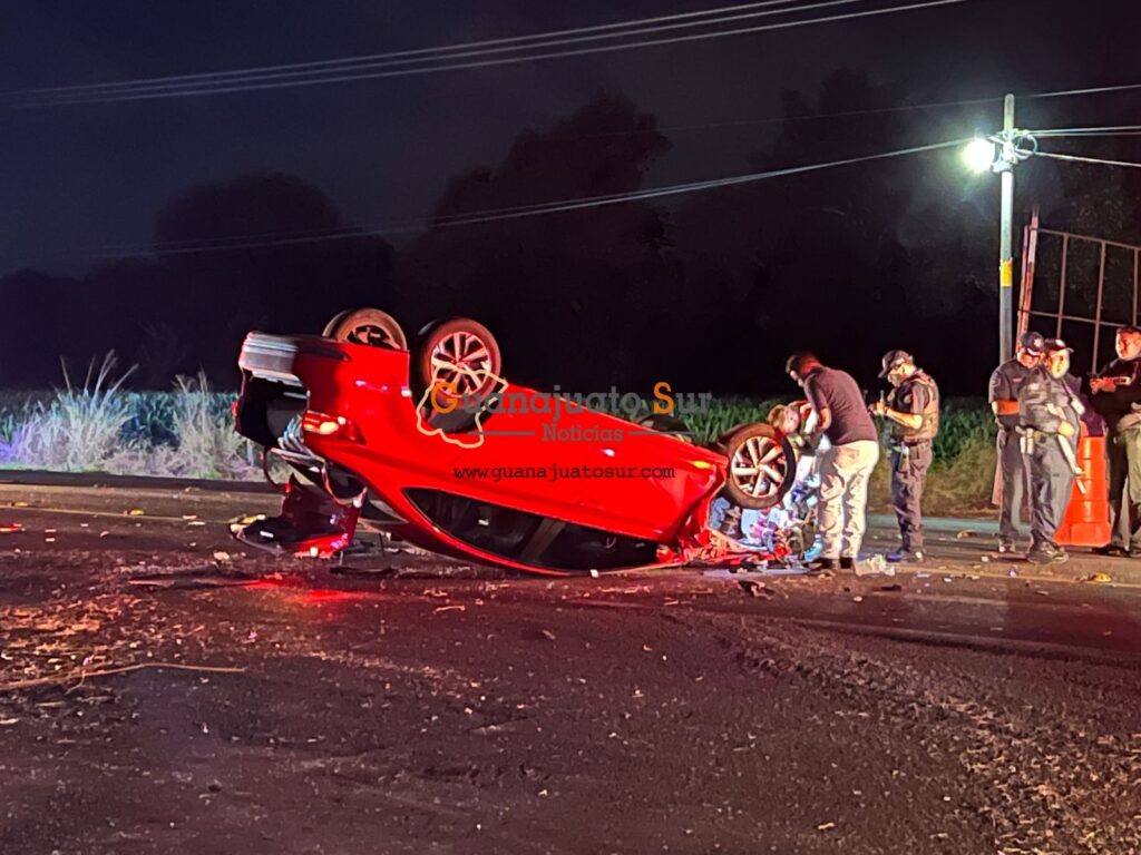 Se registro una fuerte volcadura en la carretera Salvatierra Yuriria a la altura de la entrada a la comunidad de Maravatío del Encinal, donde resultaron lesionadas tres personas entre ellas una mujer embarazada.
