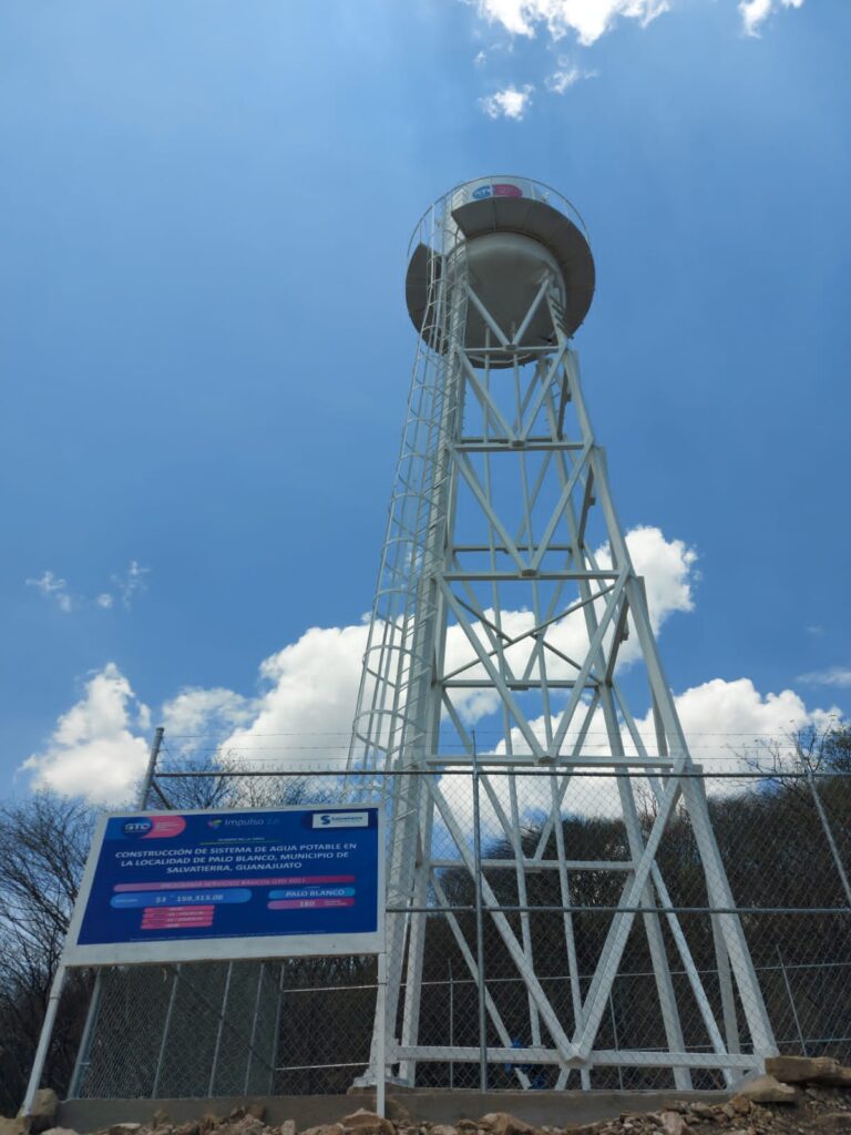 Para poder realizar la entrega del sistema de agua potable se constó de tres etapas invirtiéndose 3 millones 159 mil 547 pesos para la construcción del sistema de agua potable; la cantidad de 319 mil 524 pesos para la electrificación del pozo profundo de agua potable; así como 904 mil 361 pesos para el equipamiento de pozo profundo de agua potable donde se vieron beneficiadas 71 personas de la comunidad de Palo Blanco, recurso que fue brindado por partes iguales entre el Municipio y el Estado.