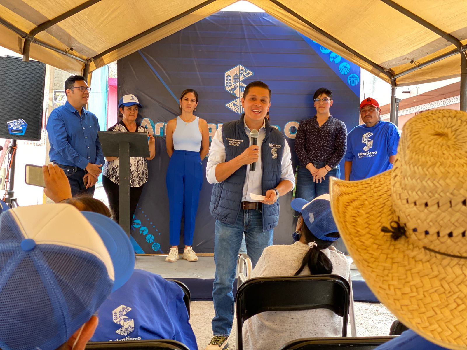 “ Somos un gobierno que cumple su palabra, que cumple con las promesas realizadas ante los salvaterrenses, estamos iniciando en gran parte del municipio obras públicas de gran beneficio social, pavimentando las calles principales de colonias y comunidades que jamás habían sido escuchadas por administraciones pasadas, lo que buscamos es que nuestras familias cuenten con mejores vialidades, que puedan transitarlas sin el miedo a caerse, ensuciarse o a que se les descomponga su vehículo por las condiciones del terreno, hace más de un año les di mi palabra y la estamos cumpliendo” indicó Germán Cervantes.
