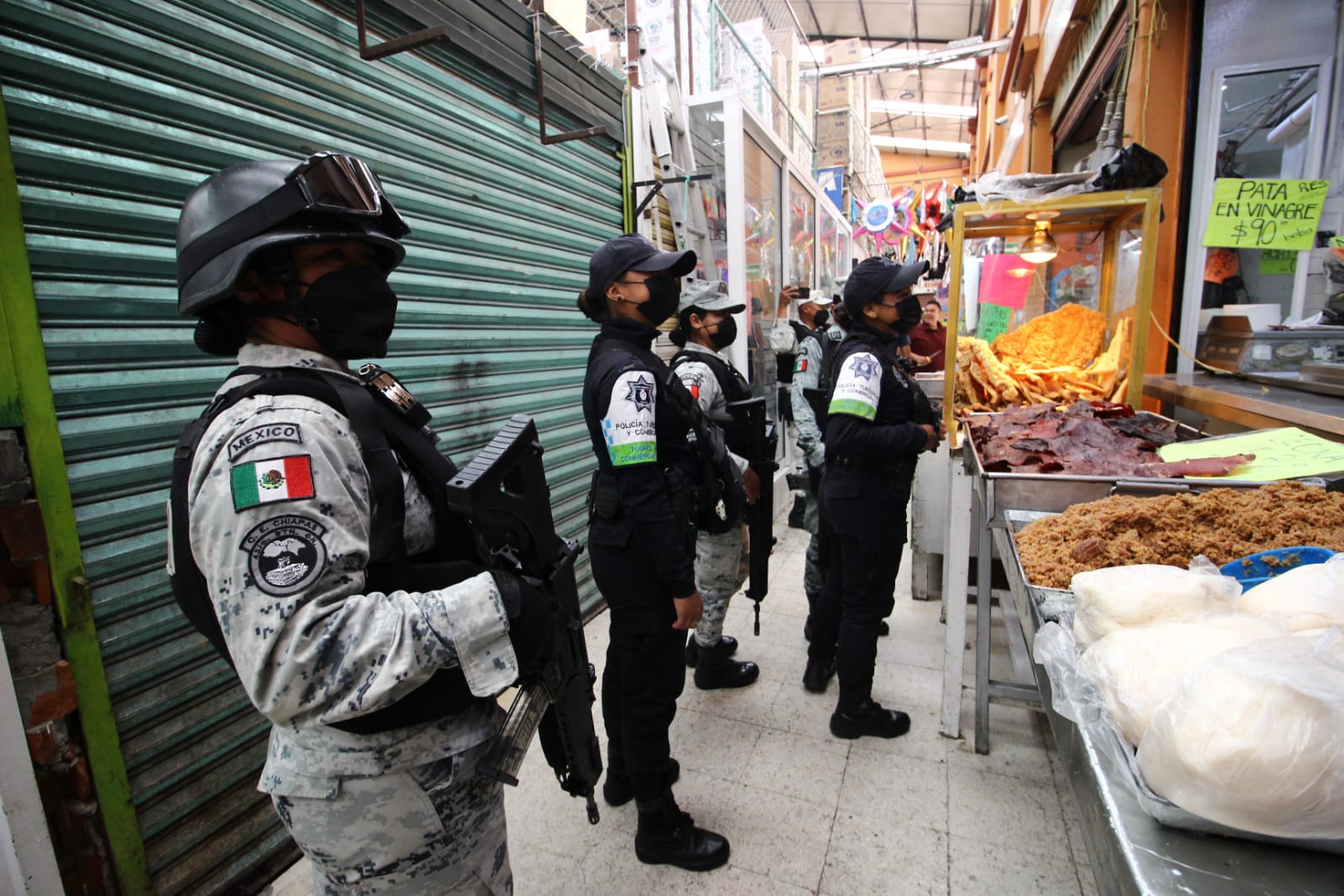 En el despliegue táctico entre la Policía Turística y Comercial junto con Guardia Nacional, comerciantes han visto beneficiada la seguridad dentro de los mercados Morelos e Hidalgo.