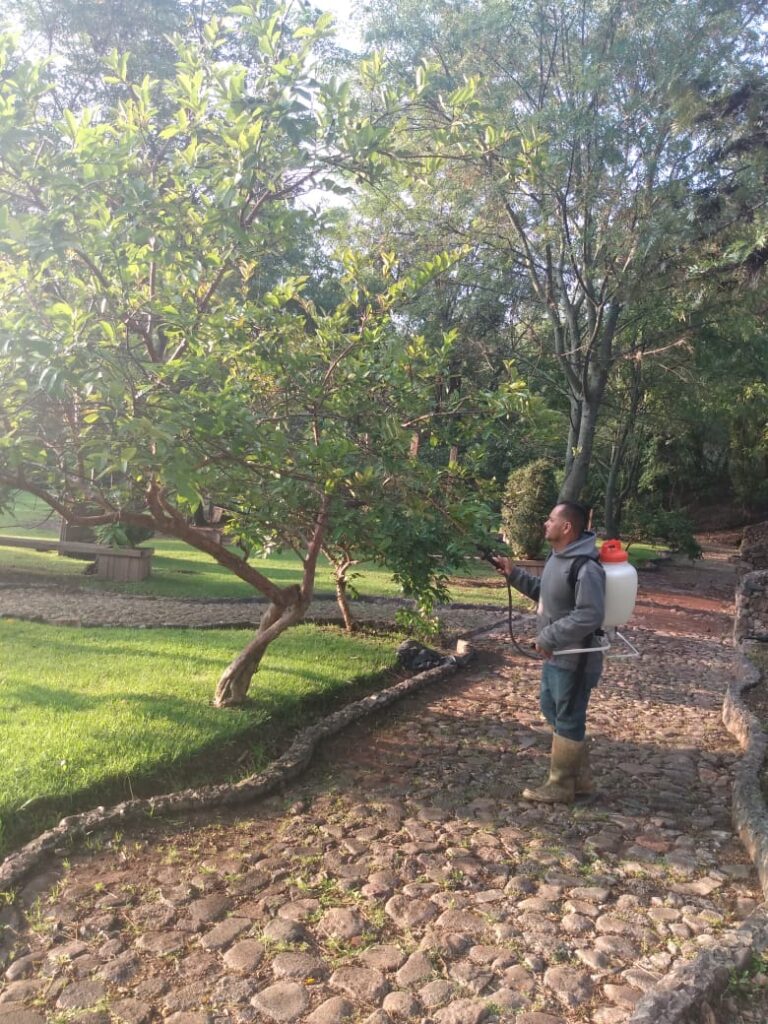 Así mismo se inició con los trabajos de fumigación de los arboles de guayaba esto con el objetivo de contar con árboles sanos, libres de plaga que produzcan frutas que puedan ser consumidas sin ningún peligro por los visitantes.