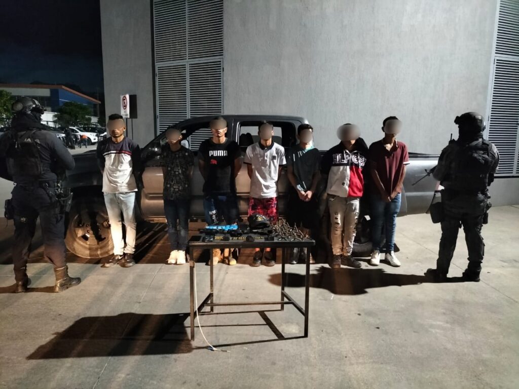 En una persecución que inició en Celaya y terminó en Villagrán, fueron capturadas siete personas como presuntas responsables de tripular un vehículo con reporte de robo, portación de armas de fuego, droga y estrellas ponchallantas.