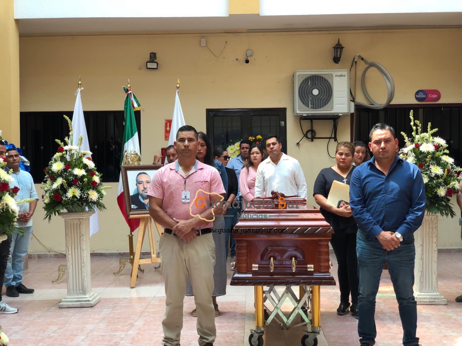 En el patio de presidencia municipal el cuerpo del funcionario público Pedro Torres fue homenajeado por familiares, amigos y compañeros de presidencia.