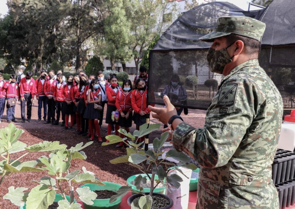 Los alumnos hicieron un recorrido por el vivero, que es uno de los 32 que se encuentra en el país, posteriormente acudieron a la zona de vehículos donde los militares dieron a conocer que cuentan con un espacio de sanidad (atenciones médicas), área de transmisiones, área de armería y área contra incendios.