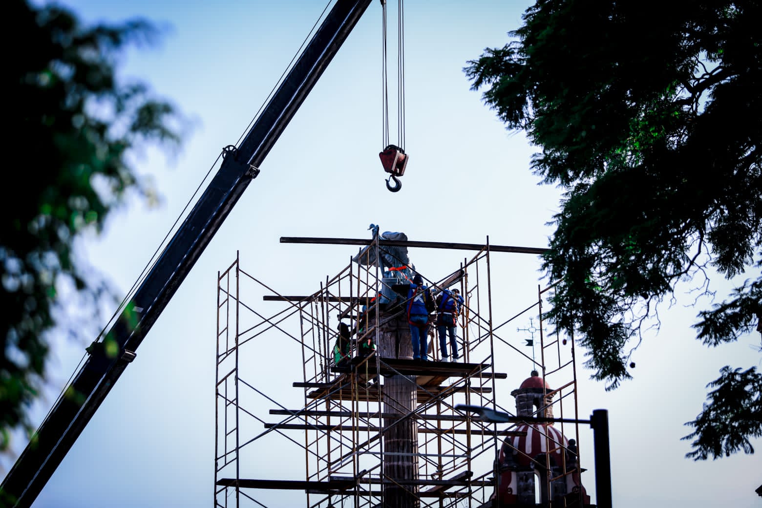 A las 8:00 de la mañana el monumento fue retirado del patio de la Casa del Diezmo, lugar donde estuvo en exhibición para que los celayenses y visitantes tuvieran la oportunidad de apreciarlo de cerca. De ahí se trasladó a la Calzada de la Independencia para colocarla en su base, donde quedará de manera permanente.