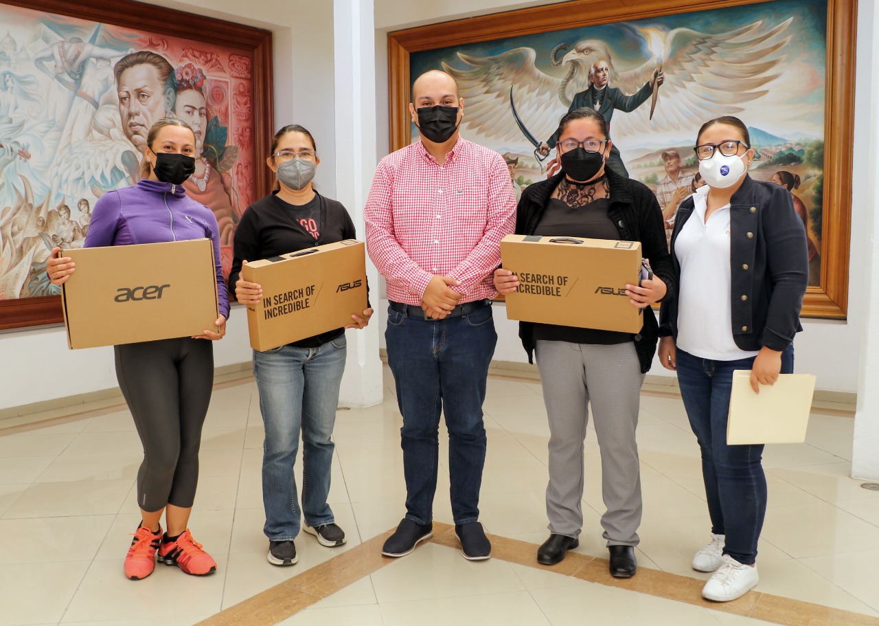 Con el objetivo de incentivar a los jóvenes para que continúen sus estudios, el presidente municipal Ariel Corona hizo la entrega de tres computadoras portátiles a las madres de tres alumnas con el mejor promedio de la generación 2019 – 2022 del Centro de Estudios Científicos y Tecnológicos (CECyTE).