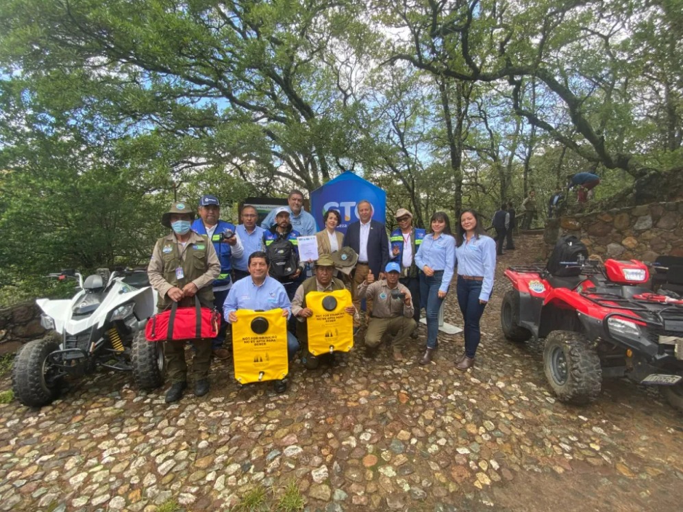 Parte del equipo que se entregó fueron cuatrimotos, mochilas aspersoras, azachas, batefuegos, rastrillos macleod, machetes con funda, azadones, zapapicos, palas, carretillas, pinzas, cintas métricas, mochilas botiquín, pinzas para cerco hacendado 11”, azadones, zapapicos, palas redondas, cintas de 50 m, cascos de seguridad, googles de protección, podadoras telescópicas, tijeras para poda y mangas de seguridad, cámaras fotográficas, binoculares, GPS, radios de comunicación, casas de campaña, bolsas de dormir, mochilas de campo, linternas, guía de identificación de aves y polainas para protección de mordeduras de serpientes.