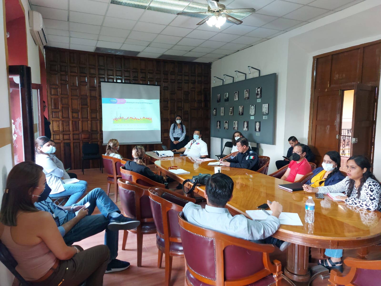 Esta mañana en sala de cabildo se llevó a cabo una nueva reunión contandose con la participación de las áreas de Comunicación Social, Salud, Instituto de la Mujer, Seguridad Pública, Fiscalización,Prevención al Delito, Derechos Humanos, Regidores del Ayuntamiento, Centro de Salud y la Jurisdicción Sanitaria número IV.