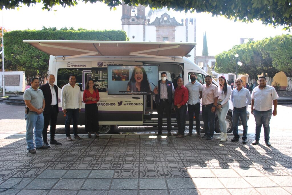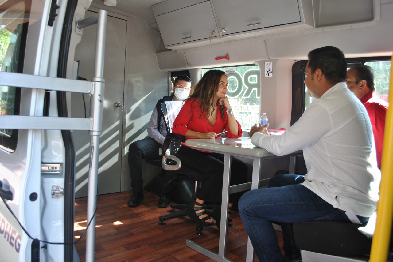 Hoy, instalaron una Unidad Móvil en el jardín principal para atender a las y los tarimorenses en materia de Derechos Humanos.