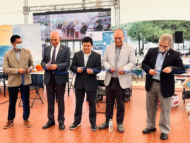 El presidente municipal Ariel Corona, a la inauguración de la tercera Feria Ocupacional que se llevó a cabo en las instalaciones de la Universidad Politécnica de Guanajuato (UPG), acompañado del presidente municipal de Celaya Javier Mendoza, el presidente de COPARMEX Celaya Mario Coello y el rector de la universidad Hugo García Vargas.