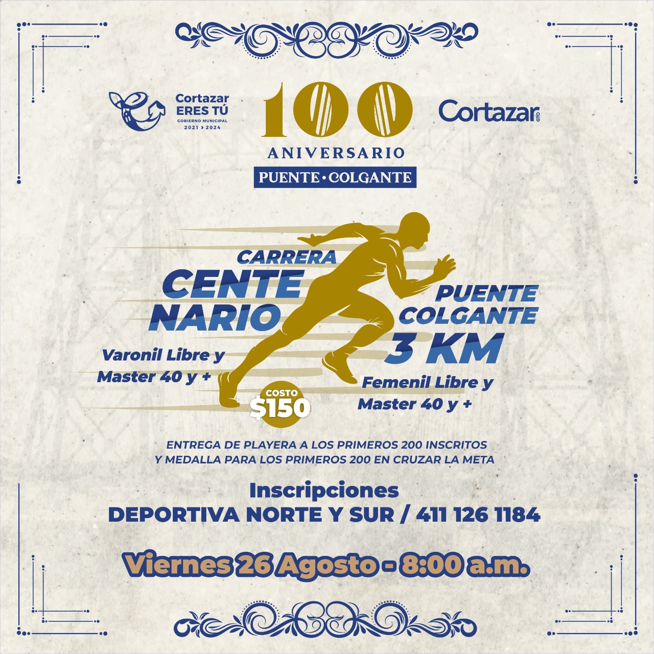 En el marco de la conmemoración del Centenario del Puente Colgante, la Dirección Municipal de Deporte llevará a cabo la carrera de 3km que llevará el mismo nombre de la celebración.